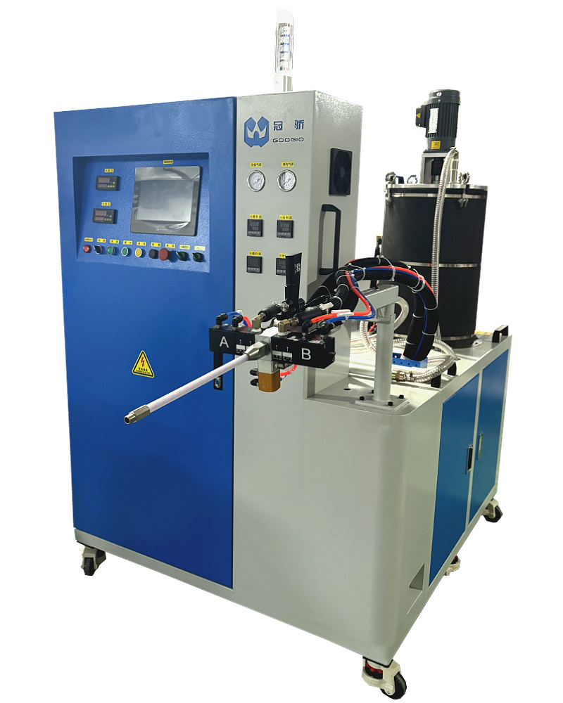 ★ 注胶机采用 PLC 编程控制,高精度计量系统和独特的静态混合装置,在线式连续自动计量、配比、混合。只需在 PLC 触摸屏上设置好比例、流量等参数,设备自动配比、自动混合,计量精度高,可连续稳定定量供料,有利于保持工艺和产品的一致性,避免人工配胶称重配比错误、搅拌不均匀、搅拌引入过多气泡等品质问题。