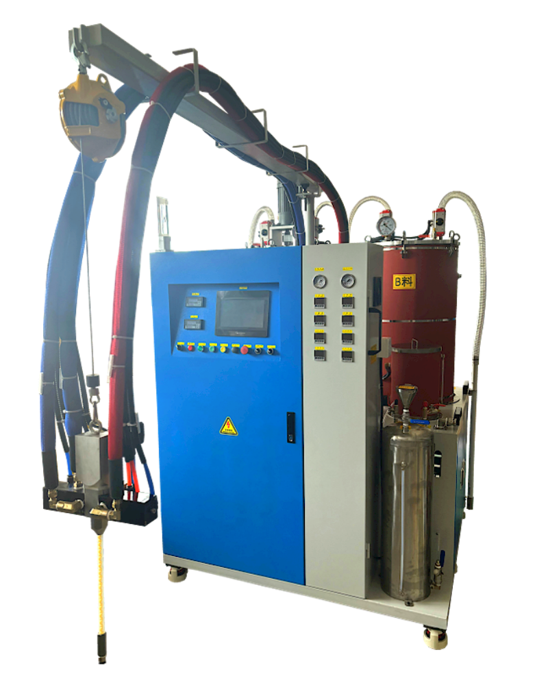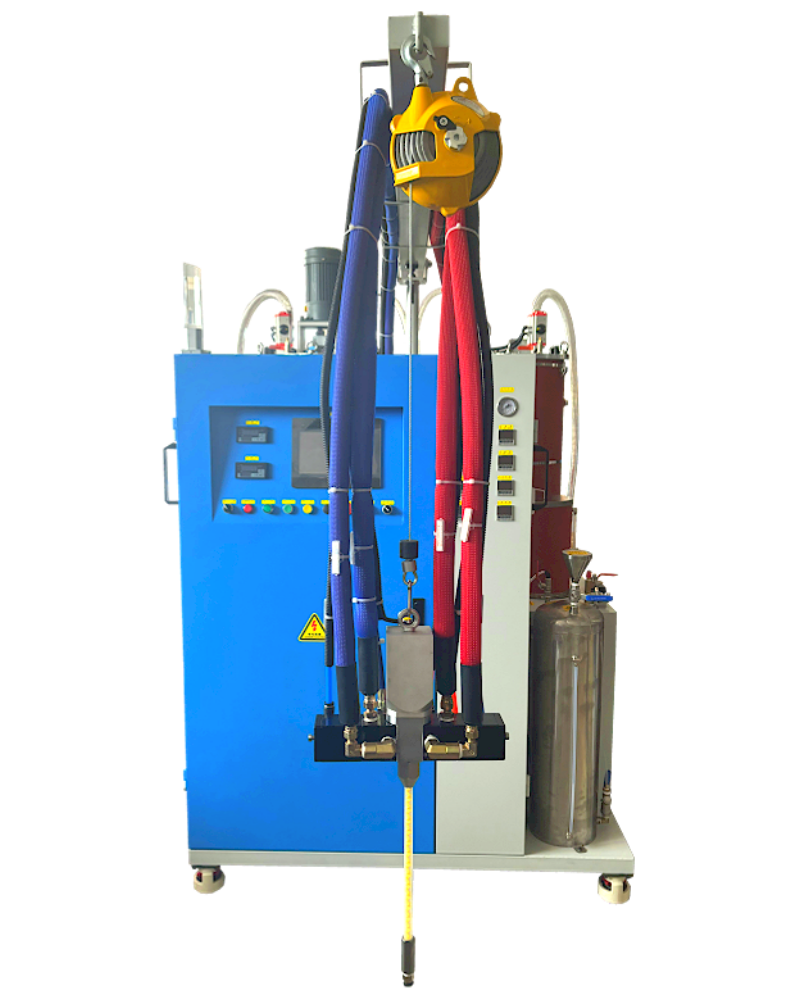 温控系统 | 日本欧姆龙精密温控&PDI智能温控调节,温控范围室温—120℃内可调,温度误差≤±2℃;A、B料罐,A、B输料管带加热保温功能;其中A、B料罐为导热油循环加热、A、B输料管为包裹发热丝电加热;A、B回料管、混合枪头包裹保温棉,隔热保温。 |