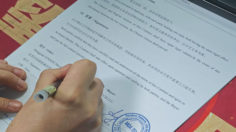 近日,我司(东莞市冠骄机械有限公司)与俄罗斯知名企业 MFA TECH LLC正式签订销售合同,达成深度合作。